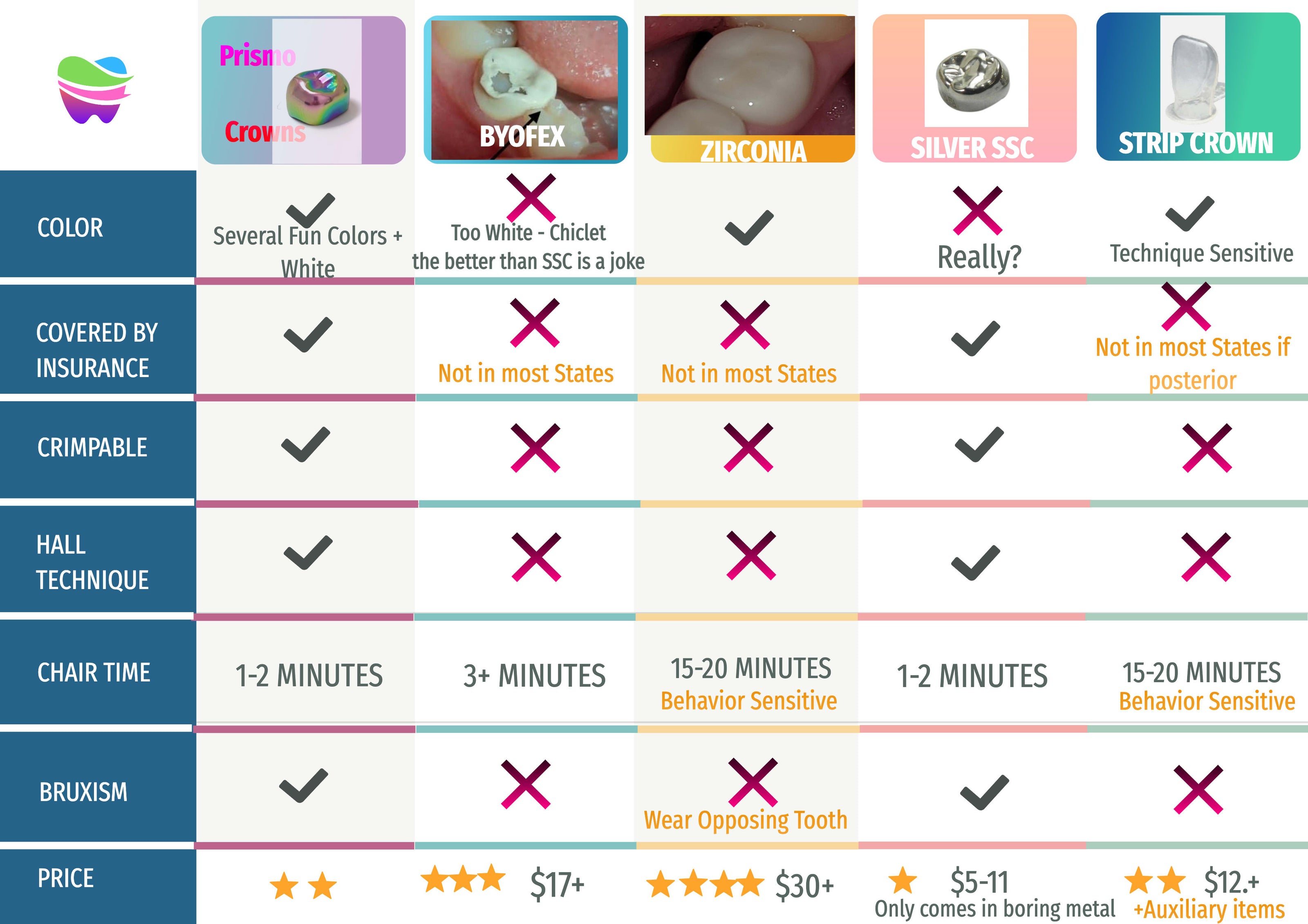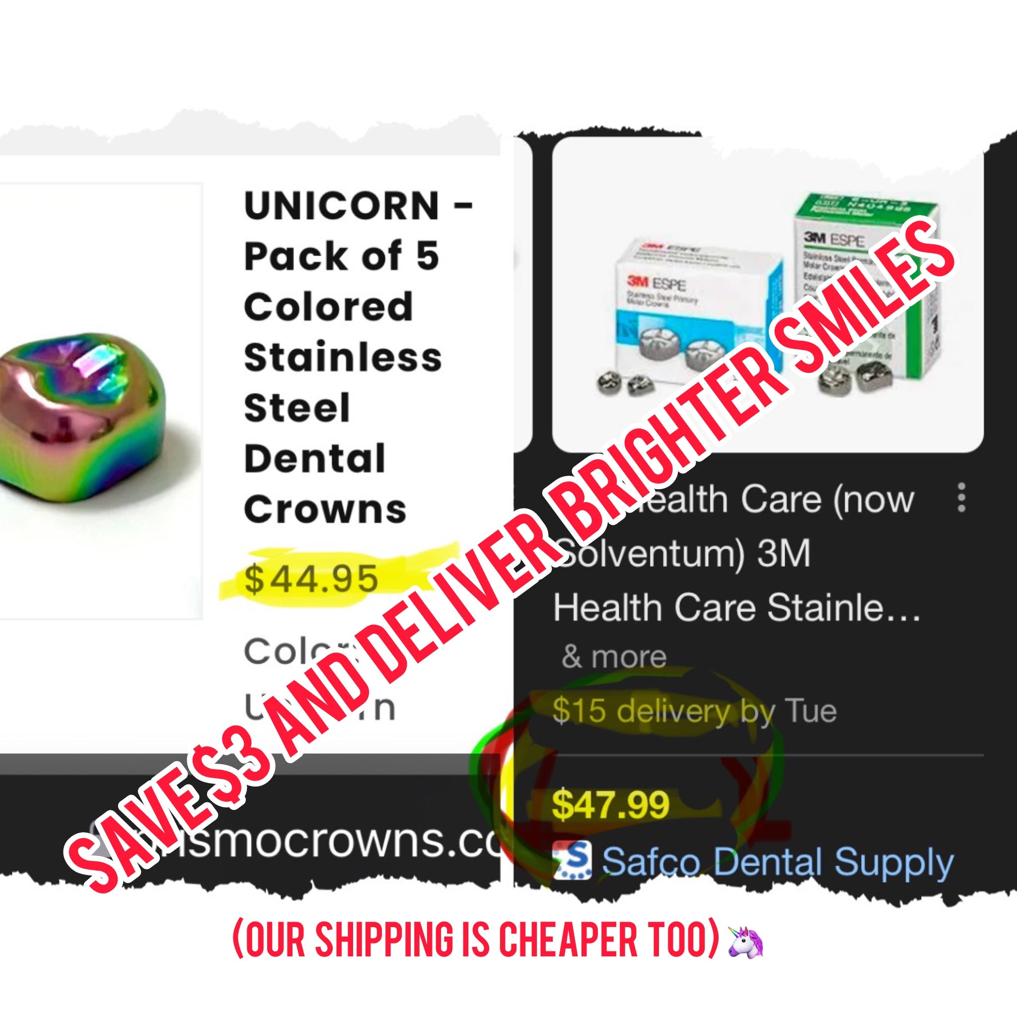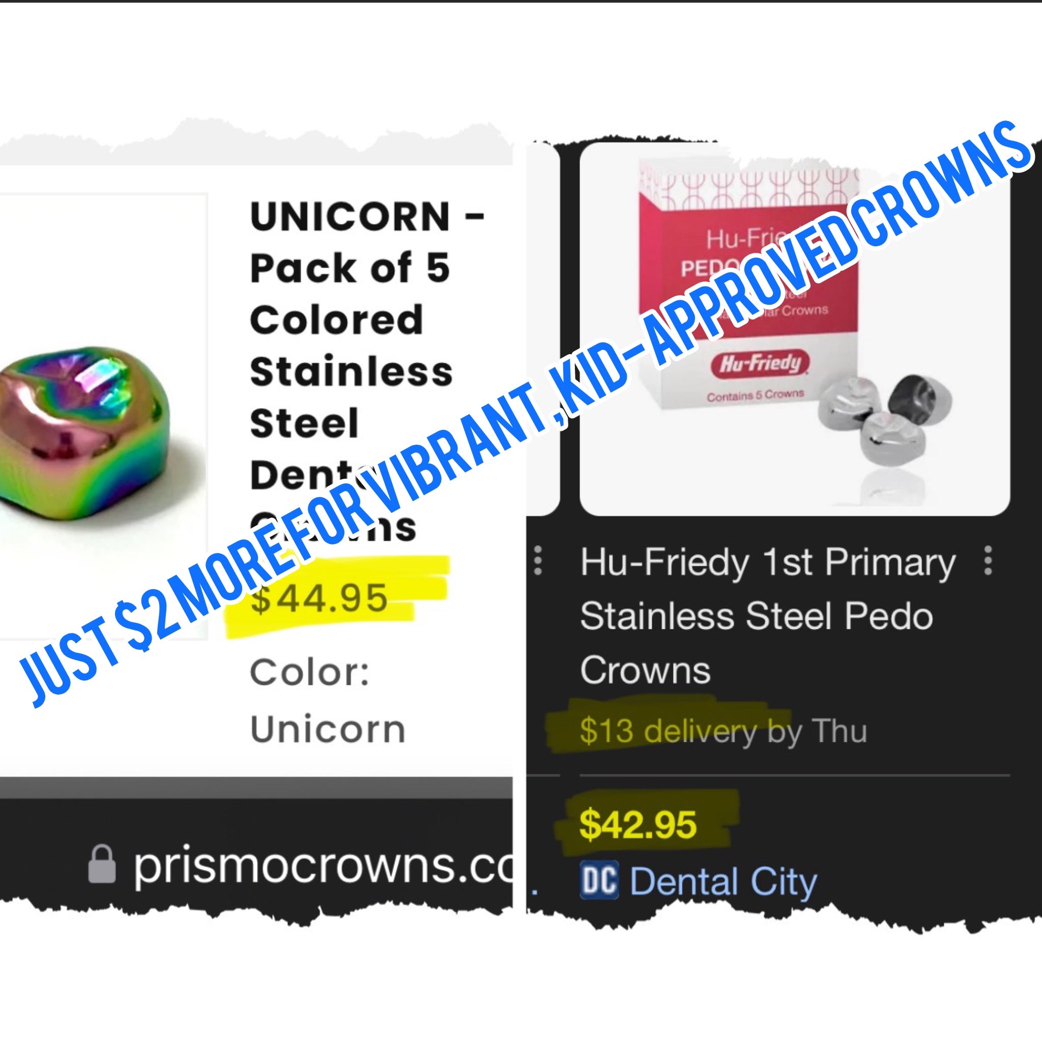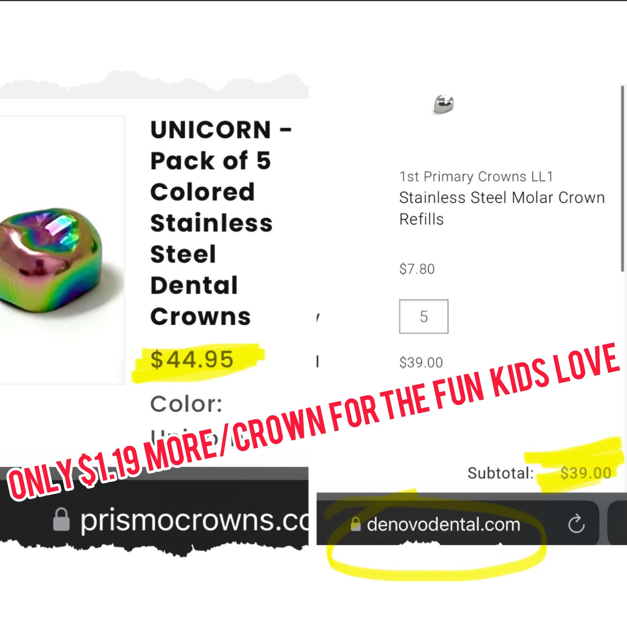 When comparing prices, Prismo Crowns are less expensive than some well-known stainless steel crown brands and just a couple of dollars more than others.